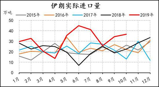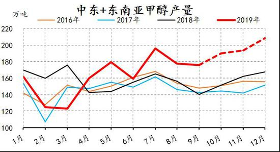 主要原因在于海外投产的滞后冲击效应。2018年下半年海外投产和复产的装置高达522万吨,其中伊朗165万吨投产,同样按照6成出口到中国计算,每月进口约增加8万吨;美国175万吨装置投产建成后,由净进口过转为出口国,受此影响,南美洲之前出口到美国的货源,转为出口到东南亚市场,尤其是中国市场。