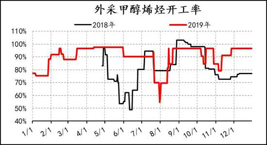 在之前的市场研究分析中,市场比较关注外采甲醇制烯烃企业的综合利润,一旦综合利润处在长期亏损的状态,外采甲醇制烯烃便很有可能因为利润问题停车抗议甲醇的高价,从而倒逼甲醇价格的下行。从2018年10月开始,外采甲醇制烯烃企业在利润不佳时多了一个新的选项,可以通过外采乙烯或丙烯取代外采甲醇维持下游的生产,因此对外采甲醇制烯烃利润水平需从两个维度评估,首先是原料的替代性比较,其次是会不会因综合利润不佳停车。