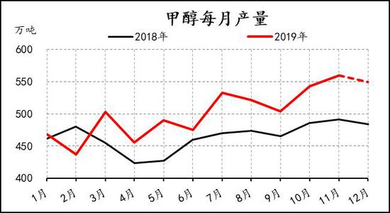 2019年全国甲醇平均负荷68.7%,较去年提升0.4%,按照甲醇8500万吨的产能计算,产量增加约30万吨。