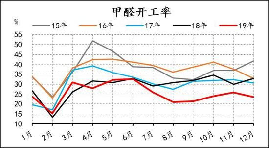 甲醛负荷自2018年的29.16%下降至25.33%;醋酸自82.30%下降至77.77%;二甲醚和MTBE变化不大。甲醛和醋酸负荷下降和今年安全事件有着很大的关注,响水事件暴露出我国化工行业的严重的安全隐患,传统下游多以中小企业为主,安全问题更是突出,因此在安全大检查的背景下,负荷有所下降。