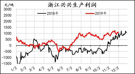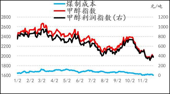 甲醇作为中间物的大宗商品,其价格由两部分构成:原料煤成本和甲醇生产利润。在2019年原料煤成本变化并不大,价格下跌更多体现的是生产利润的压缩。
