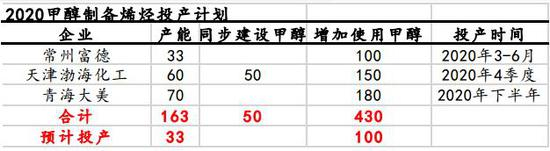 其它渤海化工和青海大美装置不确定较大,很有可能推迟2021年才能量产,暂不考虑。