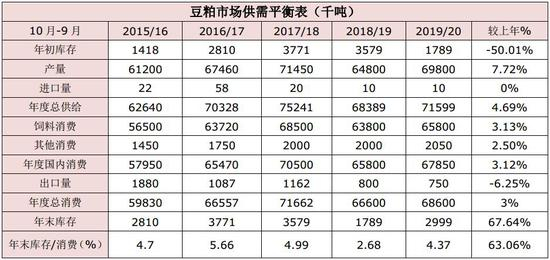 整体来看,2019/20年度供需继续处于相对宽松衡状态,出口继续维持低位水平,受国内生猪市场产能恢复及禽类存栏增加影响,预计2019/20年度国内豆粕消费将小幅增加至6785万吨,同比增幅3.13%,在该消费预期下,大豆压榨将是8500万吨左右,而国内豆粕市场的供应水平仍将取决于进口情况及下游需求,因此中国对主产国大豆进口节奏及国内油厂压榨利润将会对豆粕的阶段性供需形成影响。