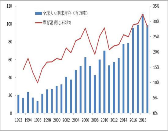 2月份USDA供需报告中,2019/20年度全球大豆库存消费比为28.16%,2018/19年度为32.37%,2017/18年度为29.3,全球大豆库存消费比下降主要因美豆大幅减产所致,目前2019/20年度美豆减产已兑现,但出口数据将根据双方贸易缓和情况有所调整,而南美大豆丰产前景明朗,但仍要继续受天气因素影响。具体来看,2月份USDA供需报告美豆出口预估数据为4831万吨,比1月份预估调高136万吨,从而令期末库存预估降至1155万吨;巴西2019/20年度新豆产量预估则较1月份上调200万吨至1.25亿吨;阿根廷2019/20年度新豆产量亦维持上月预估5300万吨。中国2019/20年度大豆进口预估较1月份上调300万吨,压榨消费预估增加100万吨,致使期末库存预估整体上调200万吨。