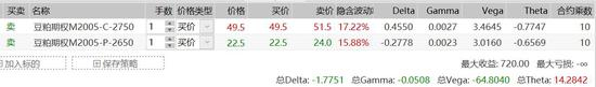 近月05合约继续以卖权参与为主,维持卖M2005-C-2750,卖M2005-P-2650跨式以及卖M2005-P-2650思路。