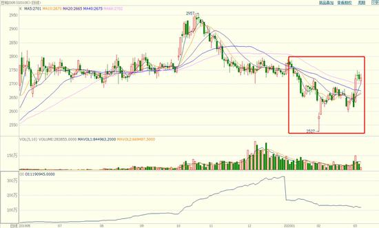 国内豆粕主力M2005合约一季度整体呈现先抑后扬的态势,春节前因双方贸易继续向好发展,大豆到港量增加预期,且国内畜禽市场在节前集中出栏,水产淡季,阶段供需宽松预期压制国内豆粕市场价格震荡走弱,春节后受外盘下挫及中国重大突发公共卫生事件影响,看空股市及商品市场氛围较浓,连粕跳空低开下挫至年内新低2527元/吨后震荡反弹,修复情绪性行情后震荡反弹,期间因非洲瘟猪疫苗研制成功消息面提振一度增仓大幅拉涨,然而疫苗从试验阶段到投放产业仍需较长事件,消息面提振持续性不强,2750一线承压后震荡整理,整体在资金面推动下进一步推升了连粕价格波动重心。