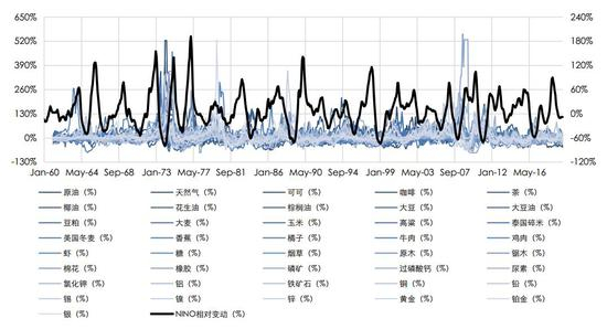 图1:厄尔尼诺与大宗商品价格的相关性、领先性呈现