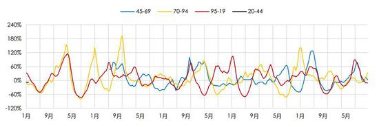 F.若以领先性来衡量影响,可以发现厄尔尼诺对商品表现出“近端负相关、远端正相关”的叠加。在单一品种的价格模型设计中,若出现两个相关性波峰,可以使用近端和远端的叠加,进行拟合。