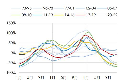 J.本文试图以量化的方式,解释为何厄尔尼诺研究仅在天然橡胶、棕榈油等少数领域受到重视,而在其他商品并不多见。需要特别注意的是,以上研究均基于同比变动。而同比变动(研究)与环比变动(投资)的区别不言而喻。这就意味着在考察基本面变动的同时,要同时参考去年同期的价格水平。