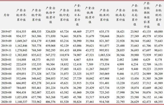 表5:全球主要国家和地区全铁月度累计产量 单位:千吨