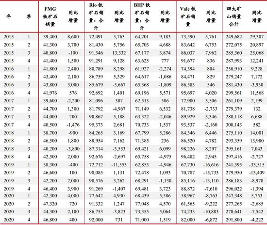 表4:全球四大矿山2020年销量预计 单位:千吨