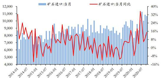 1、2020年,疫情发展并未对国内消费产生影响,反而带来了新的需求,据华泰期货研究院测算1-10月,国内铁水产量73,929万吨,同比增长6.6%,带动铁矿消费增长8,100+万吨。国内需求旺盛,推动铁矿价格大幅上涨。
