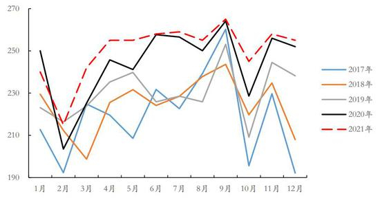 图12:中国生铁月度日均产量及2021年预估 单位:万吨