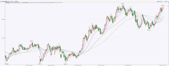 2020年黑色主要品种煤焦钢矿期价均大幅上涨,从煤焦钢矿期货指数涨跌幅情况来看,黑色原料端上涨幅度远高于成材端。截止到11月24日,铁矿涨幅高达32.46%,焦炭期货受益于供给侧改革后程发力,年内涨幅达到28.26%。从铁矿指数日度图来看,一季度,铁矿期货价格受疫情影响,节后出现大幅下挫,随后呈宽幅震荡向上,5月后呈上涨态势,一波流畅的上涨行情持续到九月,经过2个月的调整后再度向上。