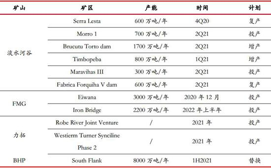 表3:四大矿山分矿区的新项目情况及既有产能复产情况
