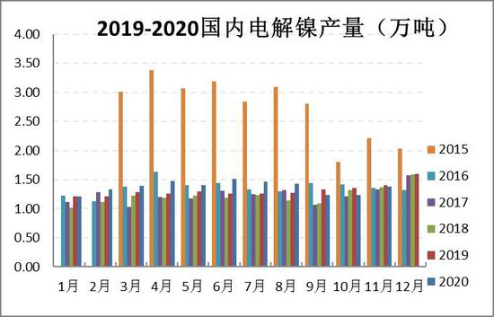 图7:2015-2020年国内电解镍产量