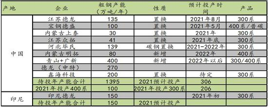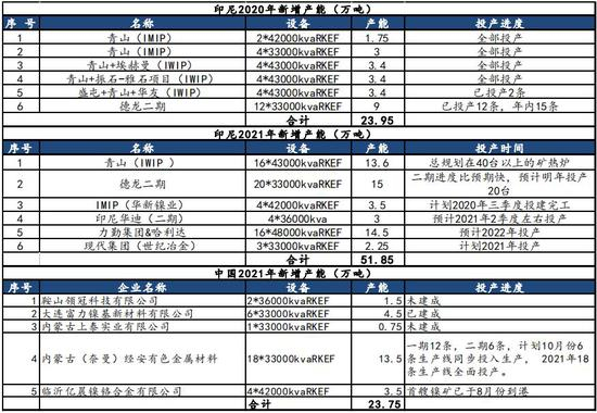 表3:2021印尼NPI产能还将集中爆发,国内产能增加相对较弱