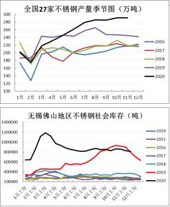 图14:2020不锈钢产量与库存