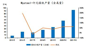 鉴于我们是对镍的价格做研判,因此只需关注未来不锈钢增量对原生镍需求的拉动。根据Mysteel的调研报告,2021年印尼待投产能仅150万吨全部为300系不锈钢由印尼德龙公司投产,预计2021年印尼不锈钢粗钢产量将达到376万吨,同比增长36.8%,而印尼不锈钢新增产量,基本以方坯形式回流国内,国内型材市场竞争将更加激烈。