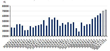 2020年由于上半年受到疫情影响,印尼上半年的产量受到了严重的影响,且前期受到国内一些企业的联合抵制产量很少。但是当前青山已逐步解决国内反倾销的限制,通过调整产品以规避贸易壁垒。而2021年亚洲及欧洲地区的需求会受到全球经济复苏的影响而有所恢复。2020年10月中国不锈钢进口总量20.71万吨,环比增加3万吨,增幅16.94%;同比增加11.95万吨,增幅136.42%。累计1-10月134.50万吨,同比增幅38.19%。而已知2020年,不锈钢的回流形式基本都是方坯,2021年德龙在国内的需求还将能够匹配超过200万吨的方坯产能,不锈钢进口可能延续2020年的形势继续增加,净出口可能进一步减小。
