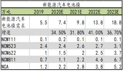 表8:2019-2023年国内新能源汽车电池镍需求
