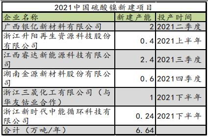 表5:2019-2020年硫酸镍新建产能