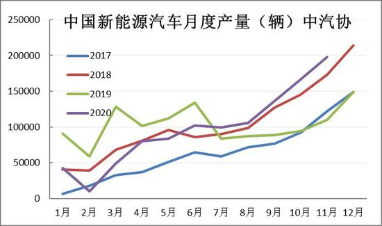 据第一电动网调研,2020年1-11月全国动力电池装机量较上年稍有不及,国内动力电池装机量50.7GWh,同比减少3.39%。但是11月份我国动力电池装车量10.6GWh,同比上升68.8%,环比上升80.9%,增长幅度极大。依据往年规律,12月往往是全年中动力电池装车量最大的一个月,而如果2020年12月不打破这个规律的话,全年装机量实现同比正增长并非不可能。