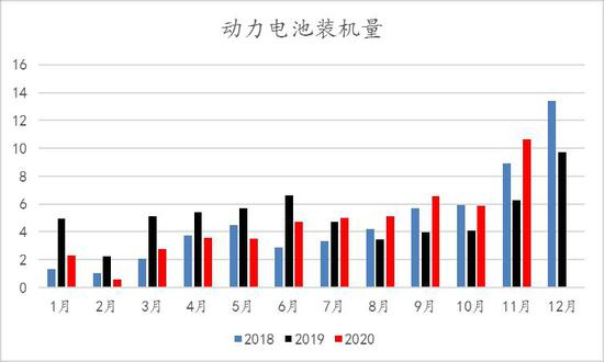 图17:2018-2020年动力电池装机量(GWh)