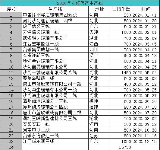 图表7 2020年玻璃生产线产能变化-冷修停产
