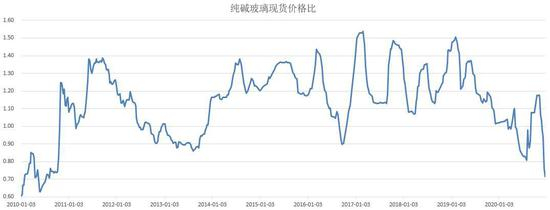 纯碱与玻璃的套利区间缺乏数据支撑,需时间验证。且2020年的纯碱与玻璃价格关系处于非常规的年份,即纯碱价格显著低于玻璃价格,这在近十年的时间内,是第三次,且每次持续的时间并不长。因此,2021年二者的强弱关系或出现一定程度的修正,当玻璃期货涨势出现放缓或是转弱时,可以从中期时间考虑,适当卖出FG-SA价差。