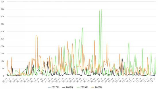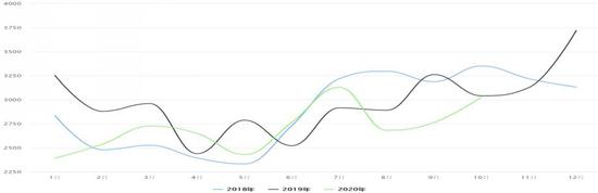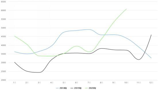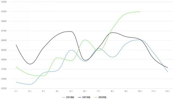 2020年,印尼产量整体相对偏弱,1—5月棕榈油产量低迷,6—8月略显焦灼,9月后产量恢复,2020年10月,棕榈油产量524.2万吨,高于前两年的451.9万吨和451.1万吨;库存方面,印尼7月迎来库存专升拐点,截至10月,印尼棕榈油库存达608.2万吨,同比2019年增加63.8%,比2018年增加38%。