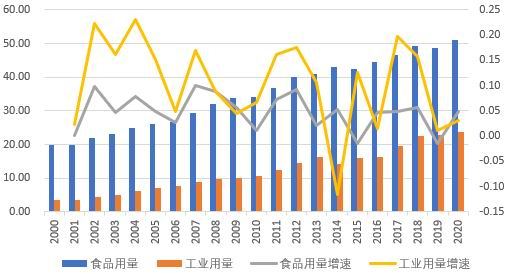 全球棕榈油消费方面,食用消费、工业消费占比约7:3,其中,食品需求大体上呈逐年稳定增长趋势,但受价格因素影响表现出一定弹性,增速落在3-5%区间概率较大;工业需求,受POGO价差、政策因素影响较大。2020年,主要需求国受制于疫情和产地减产,进口量均有不同程度减少,棕榈油制生物柴油政策实施效果不及预期;2021年,棕榈油食用需求或维持3%左右增速,其中印度、中国进口贸易量可能有恢复,而生物柴油受疫情、印尼基金支持力度存在较大不确定性。