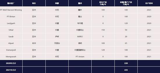 图:2020年下半年氧化铝新增产能规模在350万吨,释放产量时间集中在第4季度末