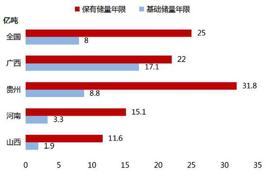 图:中国及分地区保有储量及基础储量年限对比