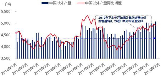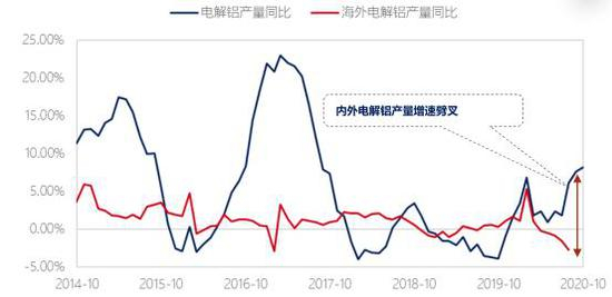 图:中国内外电解铝产能增速出现明显劈叉