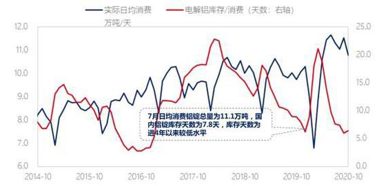 图:我国电解铝日均消费和库存消费比
