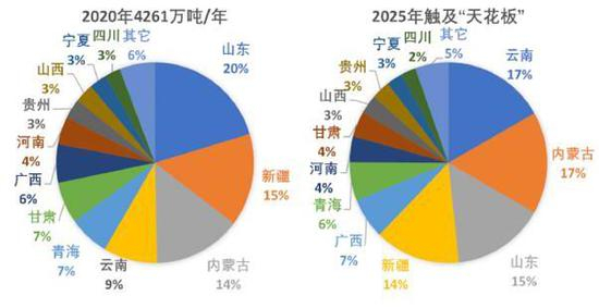 图:十三五与十四五对比,中国电解铝产能分地区分布情况预估
