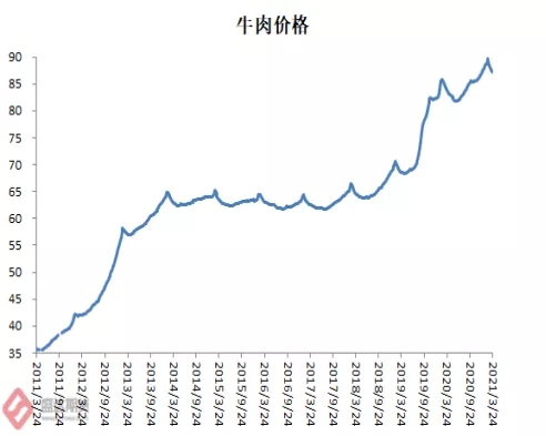 图2.7:牛肉、羊肉、生鲜乳价格情况