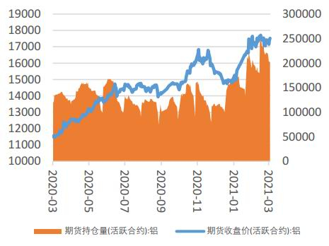 图1 沪铝主力价格(元/吨)与持仓量(手)
