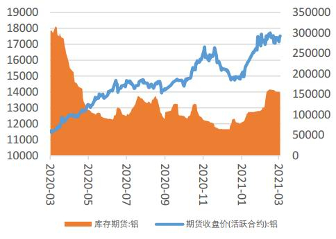 图2 沪铝主力价格(元/吨)与库存期货(吨)