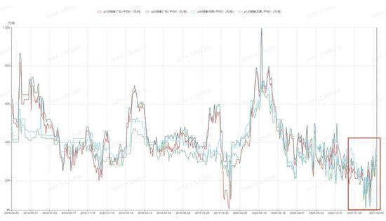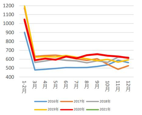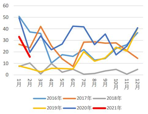 产量方面,SMM数据显示,2021年2月(28天)中国氧化铝产量585.7万吨,其中冶金级氧化铝564.7万吨,冶金级日均产量20.17万吨,环比增加9.89%,同比增加9.16%。2月北方地区运行产能环比1月有所抬升,数家氧化铝厂在月内追补前期因焙烧受限而缺失的产量。截至3月上旬,中国冶金级氧化铝运行年产能7182万吨,预计3月(31天)冶金级氧化铝产量625万吨左右,日均产量20.15万吨附近,环比2月基本持平,需持续关注北方地区高成本边际产能变动情况。