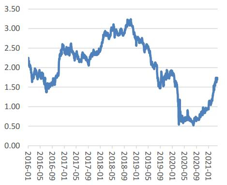 供需来看,原料方面,氧化铝价格窄幅波动,预焙阳极价格创三年新高;3月电解铝开工保持高位,电解铝利润再攀高位,关注后续新增产能情况,中期关注碳中和对电解铝成本影响。废铝市场清淡,再生铝货源偏紧。铝棒加工费低位徘徊,二季度或将出现反弹。2月铝箔出口同比增七成,欧盟制裁铝型材影响有限。下游需求端逐步进入传统旺季,关注电解铝去库表现。