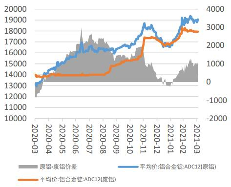 3月份铝价维持高位震荡。当前废铝市场面临的核心问题在于进口废铝限制带来的供应减少与高位的铝价剧烈波动使得向下传导不畅带来的“供需双弱”,最大担忧在于生铝终端最大消费板块的传统燃油车消费,较难出现整车售价上涨,从而使得原料端价格大幅上涨难以被消化,需持续关注传统燃油汽车涨价情况。供应上,进口原料标准依旧严格,虽有部分原料自广东进入国外,但听闻退柜率较高,且当前废铝价格进口窗口并未完全打开,到货多为春节前订货。预计短期废铝价格上方继续承压,但进入4月后随着高位铝价向下传导,关注高位铝价向下传导情况,是否使得主要矛盾自需求端转向供应端,从而带来废铝价格上涨,精废价差收窄。