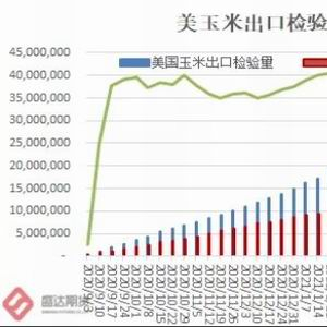 USDA:截至2021年4月22日的一周,美国玉米出口检验量为1,951,012吨,前周1,559,267吨,去年同期为1,078,788吨。迄今为止,美国2020/21年度(始于9月1日)玉米出口检验总量为41,232,631吨,去年同期为22,426,554吨。同比增加1,881万吨,增幅83.86%。