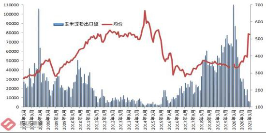 受全球疫情及国内玉米淀粉价格持续冲高影响,国内玉米淀粉出口量下滑明显,3月份出口量创五年以来最低的单月纪录。