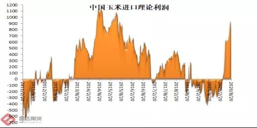 目前,南北港价差在110元/吨。理论上进口美国玉米理论利润380元/吨。