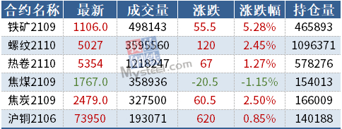 期货要闻简讯丨黑色系领涨,铁矿涨逾5%