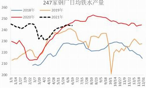 近期相关部门多次召开会议监管大宗商品价格的快速上涨和过度投机,市场价格出现大幅回落,钢材的高利润也再度下滑至盈亏线附近,随着利润的下滑,铁水产量上升趋势也逐渐放缓。随着监管的加强和淡季因素等影响,炼钢利润运行至偏低区域,钢厂淡季自发减产也将逐渐增多,且从季节性角度来看,成材产量上升趋势将逐渐趋缓,下半年大概率逐渐回落。