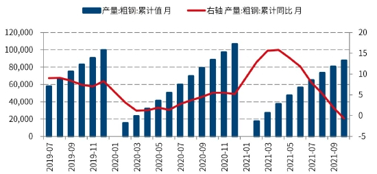 图:粗钢产量(单位:吨、%)