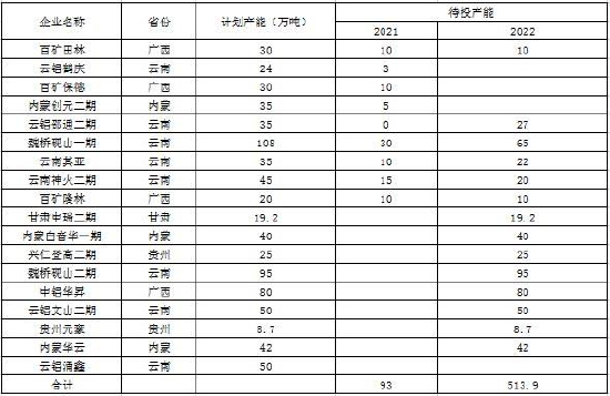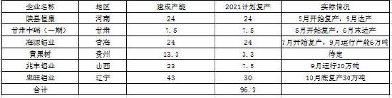 除了新增产能外,今年复产力度也较大。受电解铝高利润驱动,原先关停产能部分开始复产,今年有96.3万吨的复产产能将陆续投放到市场。